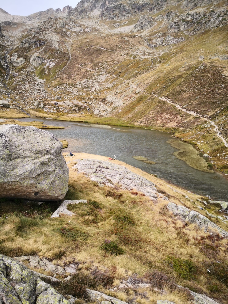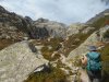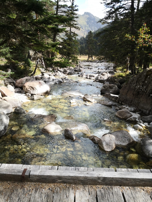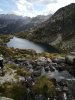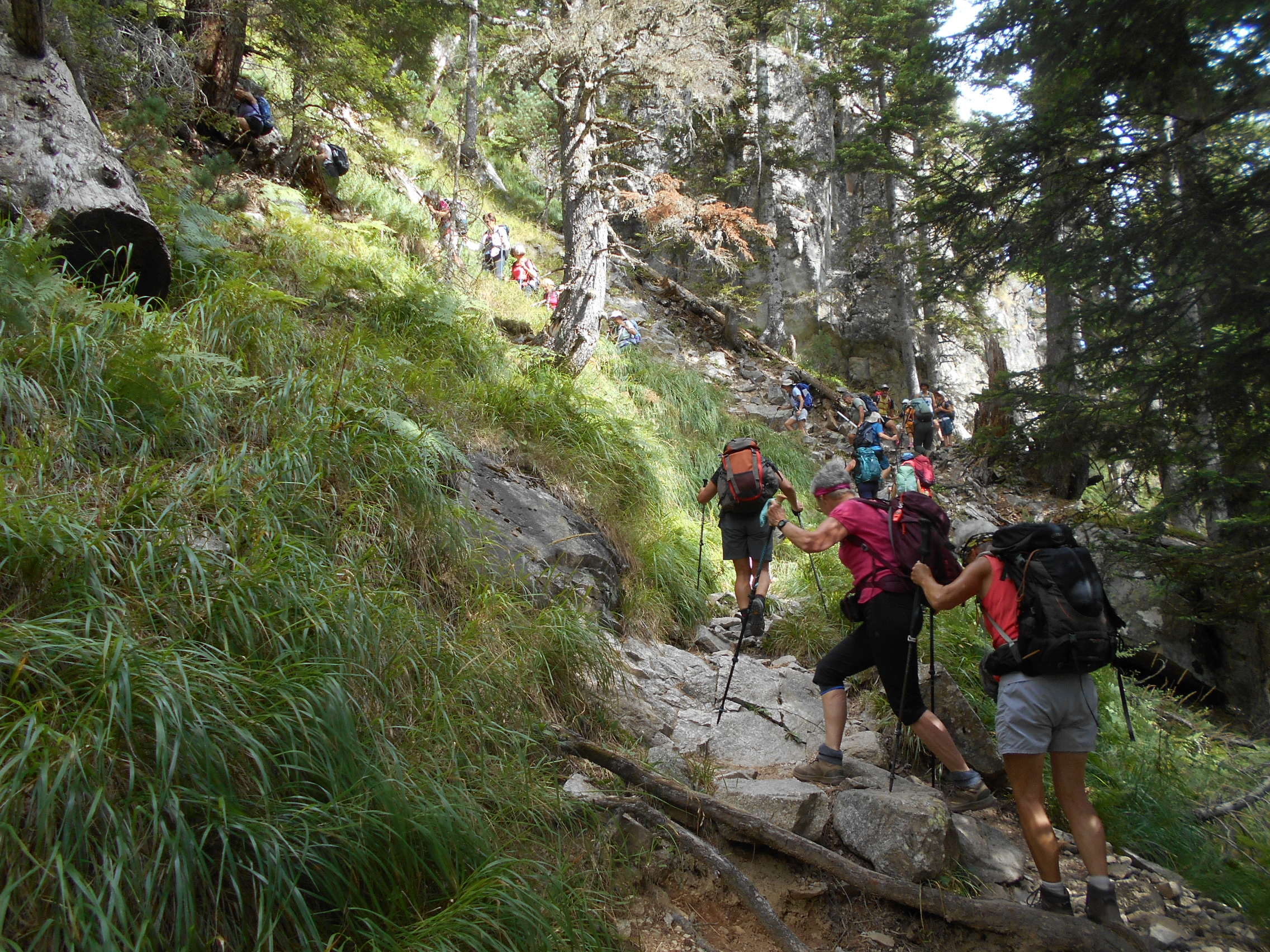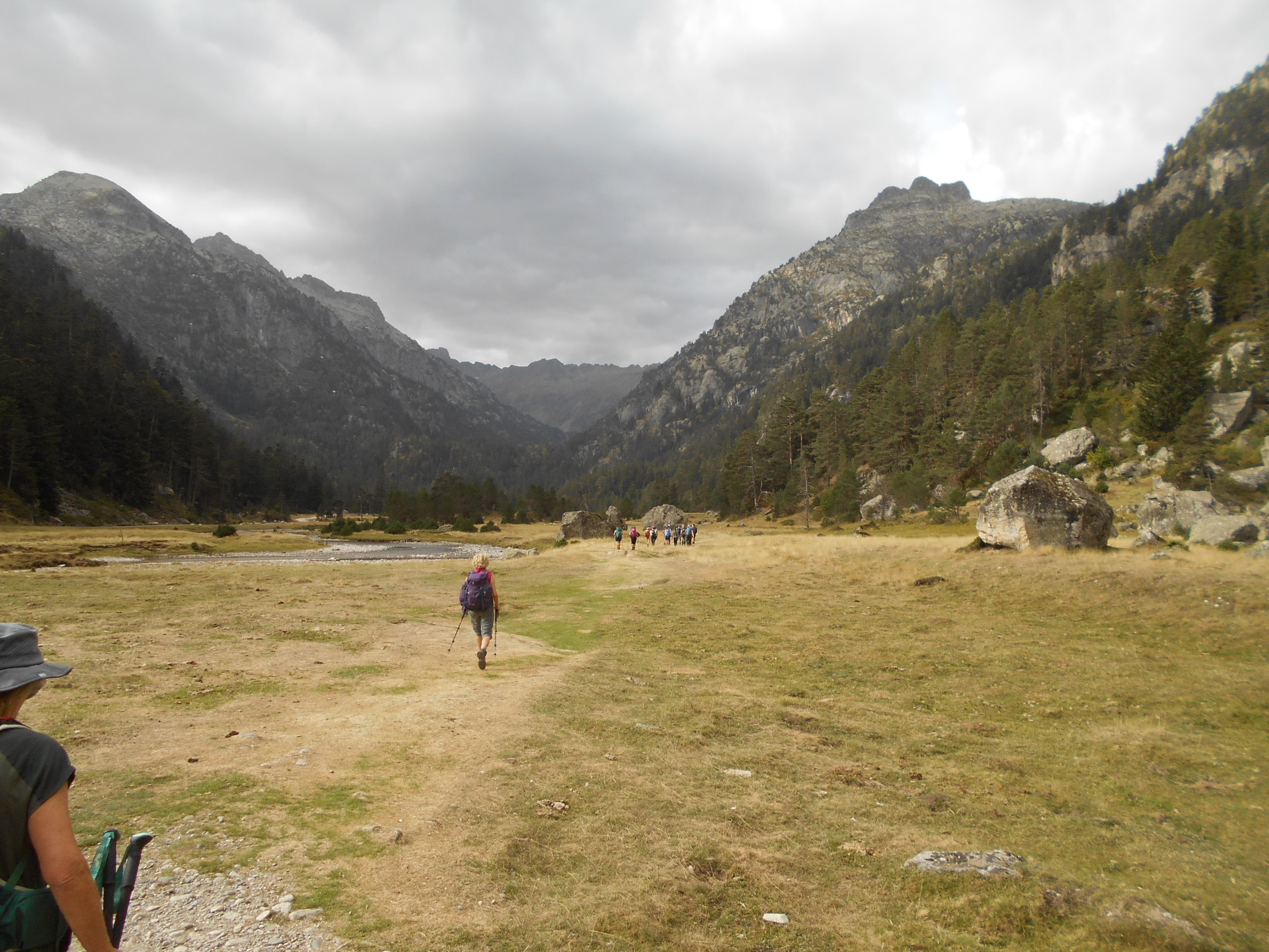Garés au Pont d’Espagne, nous traversons le long plateau de Cayan jusqu’au pied de la forêt. La pente est rapidement redressée et les conversations de retrouvailles s’espacent. A la sortie de la forêt le rideau s’ouvre sur les sommets bordant la vallée. Un premier groupe mangera au lac inférieur de l’Embarrat et le deuxième fera de même au lac supérieur.
