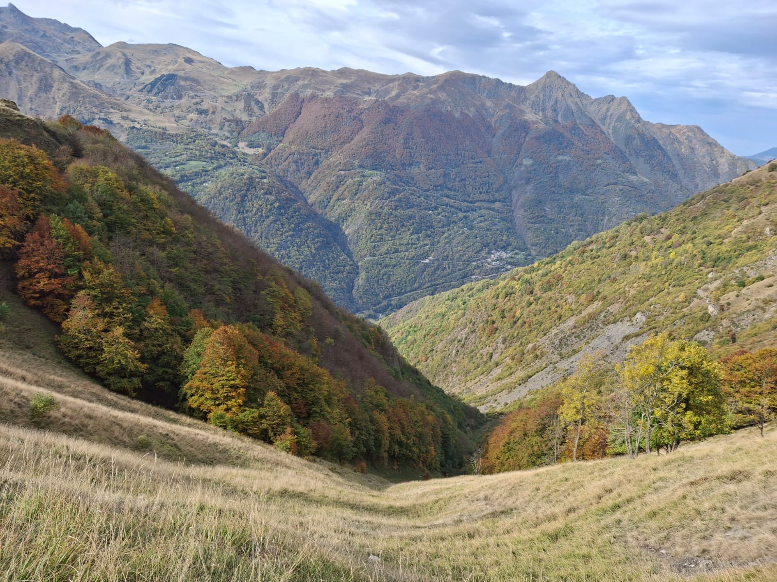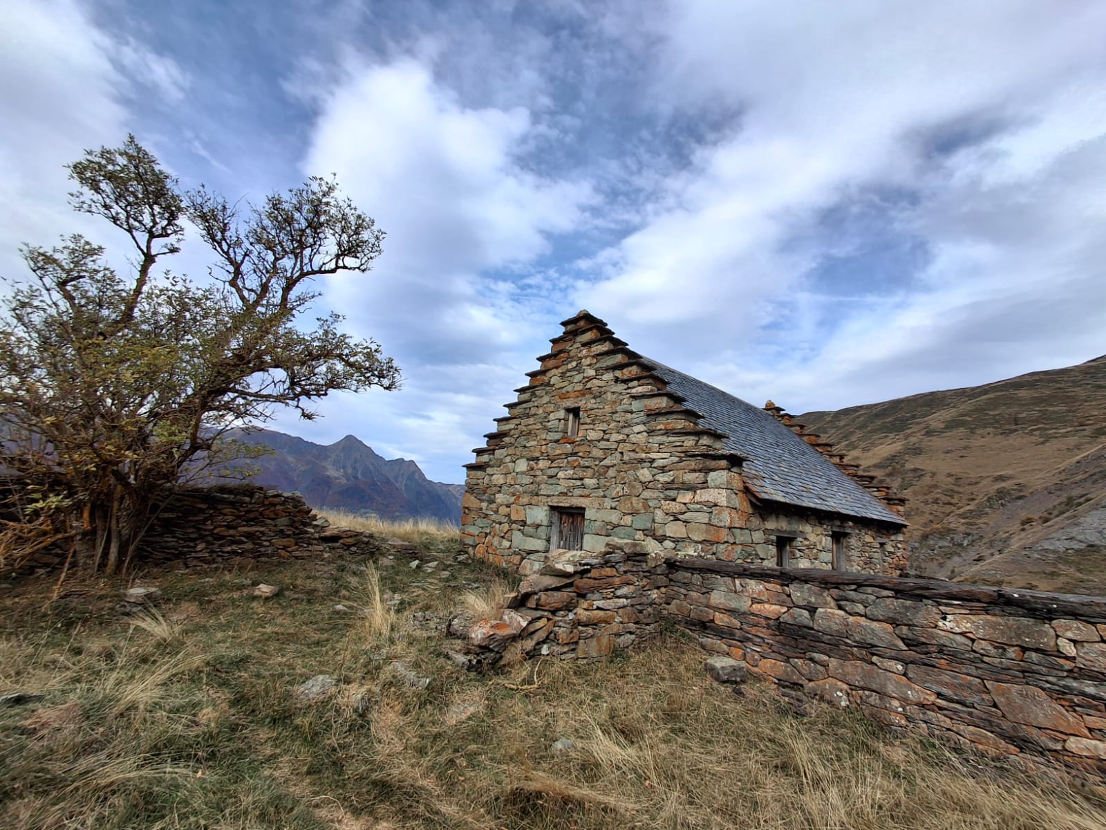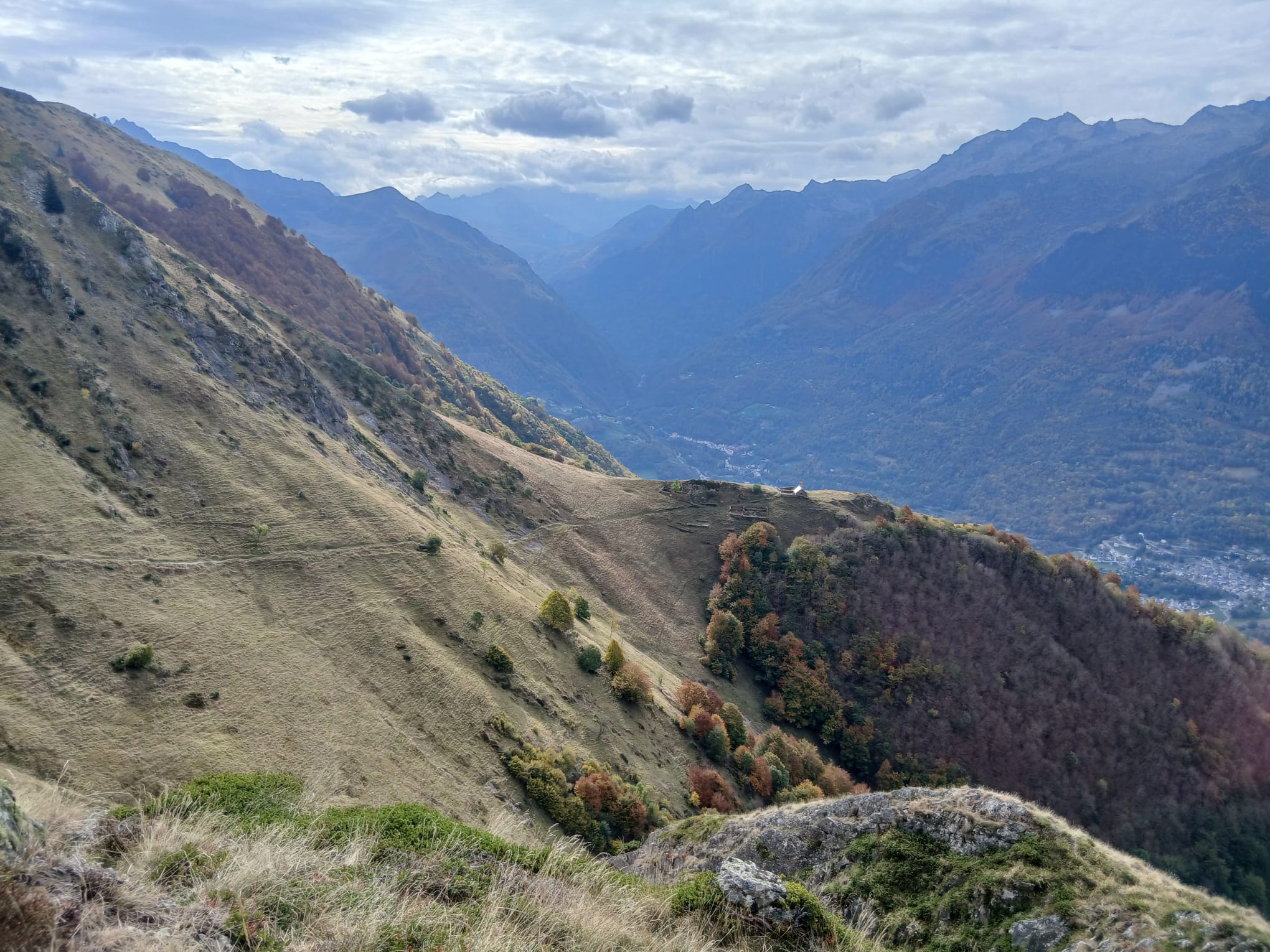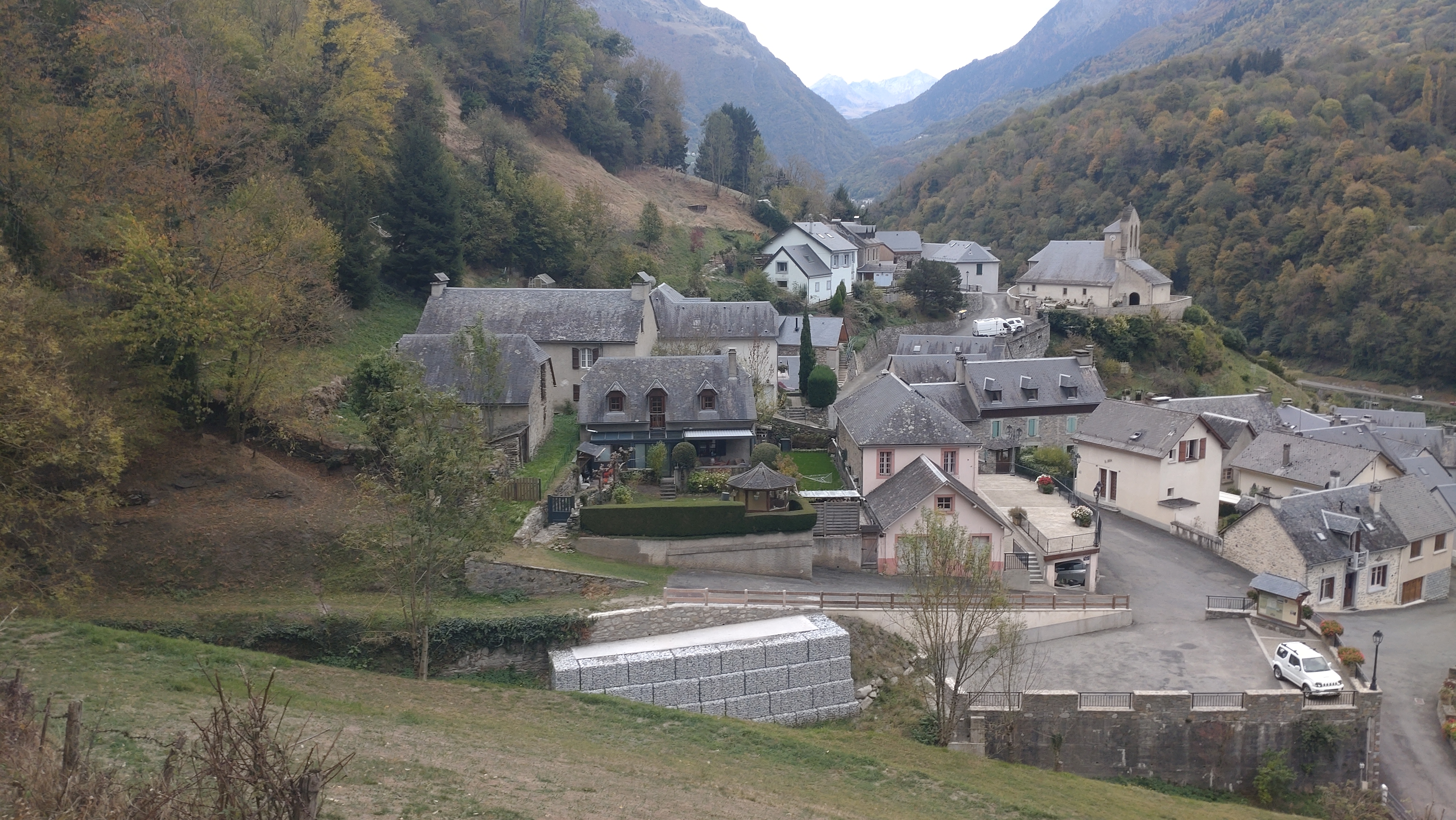 C’est du parking d’ une station service, au milieu de Porsche et Ferrari, que nous commençons la rando vers le Côt de Yéous. Une fois le gave de Gavarnie franchi via une passerelle haubanée tremblante sous les pas des nombreux marcheurs, nous traversons le très beau village de Saligos, jusqu’au carrefour de la Croix de Gardette, départ de la boucle. Une montée énergique et nous traversons le joli quartier des granges de Larbèze, courte pause avant de s’ élancer vers la cabane de Cot de Yéous, c’ est le début d’une longue montée , peu propice aux arrêts, la pente est forte mais la montée est facilitée par un beau sentier et ses nombreux lacets. Midi, voici enfin la cabane, le panorama est immense , mais le plafond nuageux cache hélas les hauts sommets de Gavarnie. Il reste encore prés de deux cents mètres à monter pour atteindre le point culminant de cette randonnée, 1654 mètres, et le restaurant d’altitude ( situé au départ du sentier menant vers le Turon de Hailla).