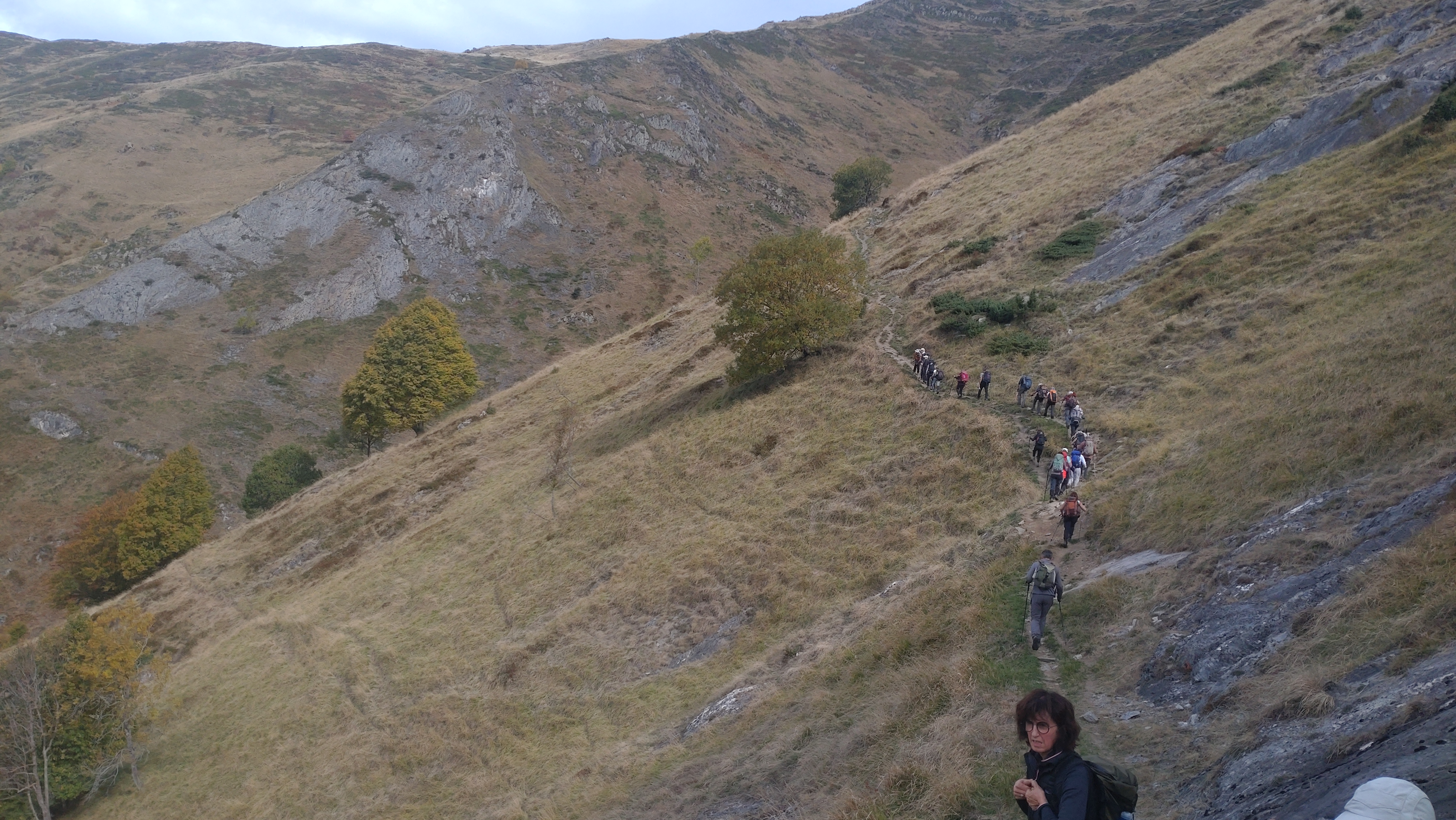 De là haut, nous apercevons l’arrivée à la cabane du second groupe qui fait l’aller-retour. Ils repartiront en même temps que nous, après 45 mn nous entamons la longue descente, d’ abord à flanc de montagne puis au milieu de nombreuses granges, certaines en ruine . Revenu au carrefour de Gardette, quelle ne fut pas notre surprise de voir arriver le second groupe, ce qui nous permet de regagner ensemble le bus. Belle journée, qui manquait à mon gout d’un peu de soleil pour apprécier la beauté de ces paysages, peu importe les randonneurs étaient ravis . Départ du bus à 16h15, juste avant la pluie que nous avons trouvé à Lourdes.