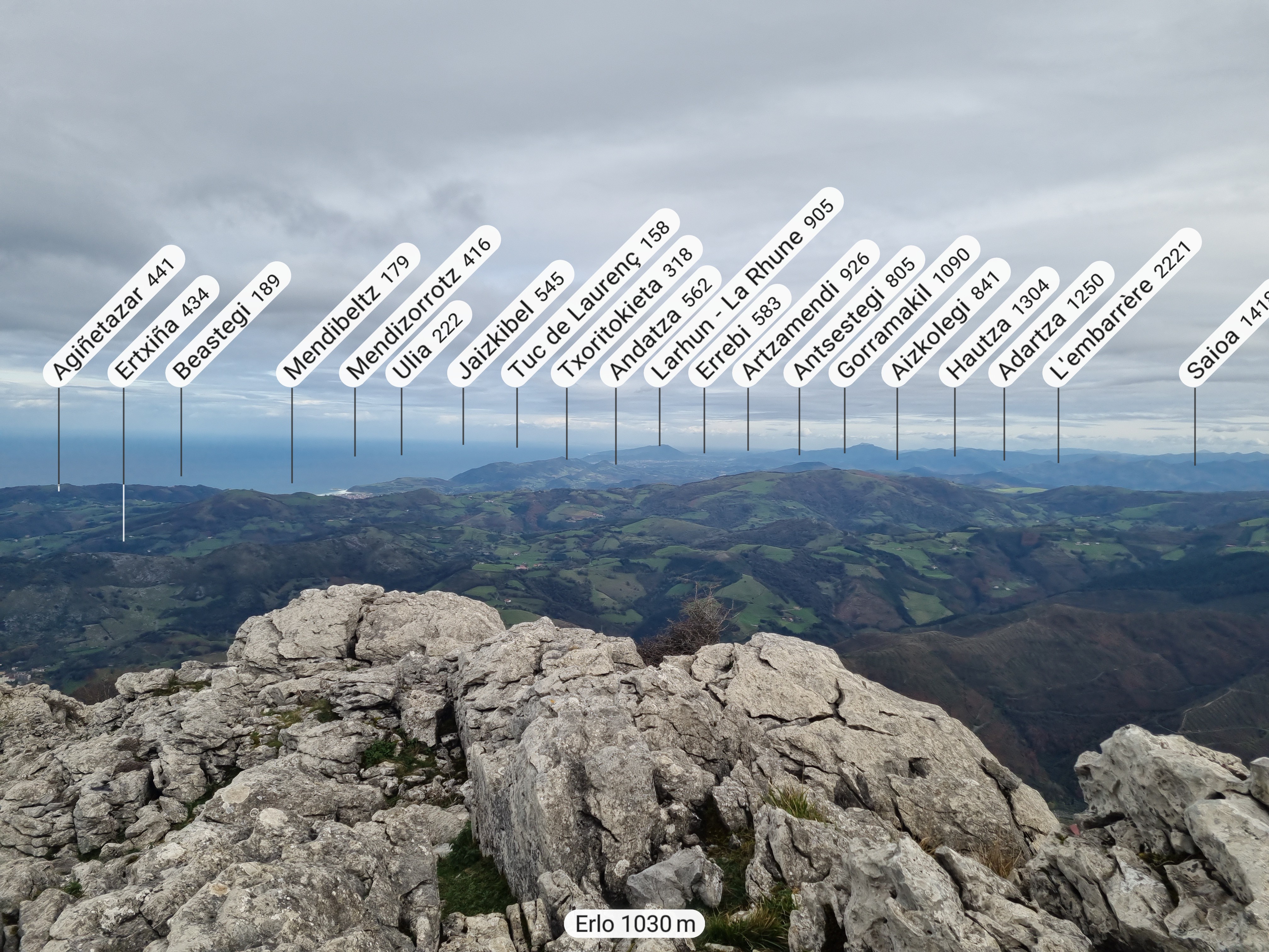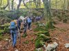 Notre ascension commence dans les rues du village à travers de luxuriants potagers puis se poursuit au long d’un chemin agréable montant à la basque. Entendez par là : un long plat, une rude montée tout droit pleine pente, un long plat, une rude montée pleine pente, un long plat… Cependant, le rythme de marche est agréable, la hêtraie splendide et les échappées sur le paysage de toute beauté.