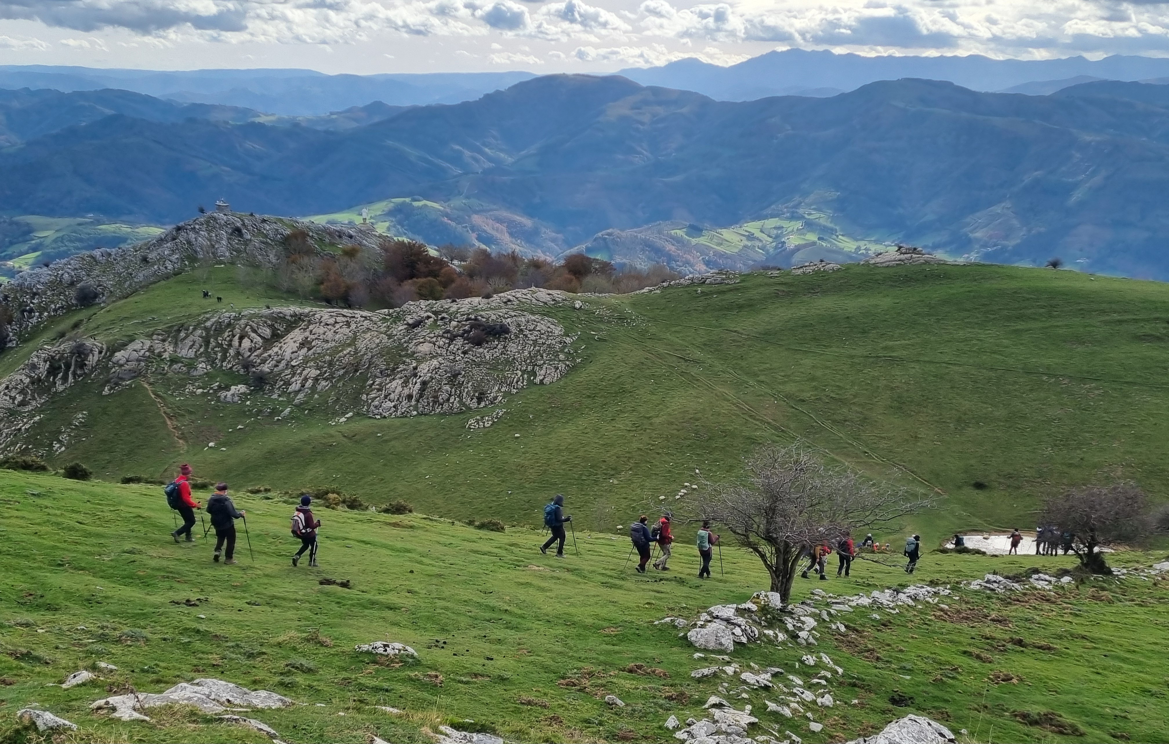 Les autres continueront jusqu’à la Torre (1021m) puis au pic Erlo (1029m) où ils pique-niqueront en regardant l’océan. Pour ce groupe, le retour jusqu’au refuge se fait par de douces prairies verdoyantes, parsemées de rochers blancs et peuplées de chevaux et de brebis dodues.
