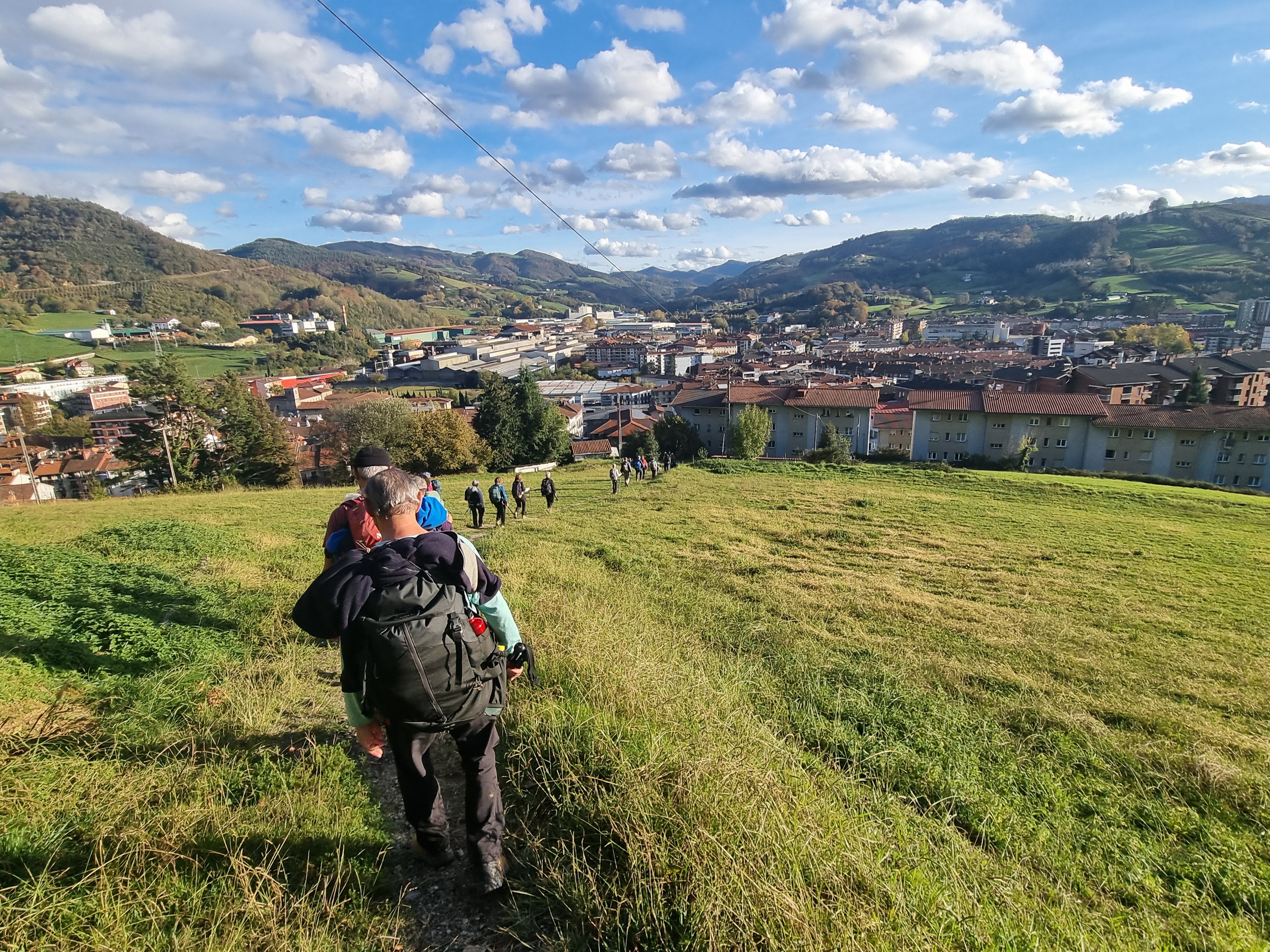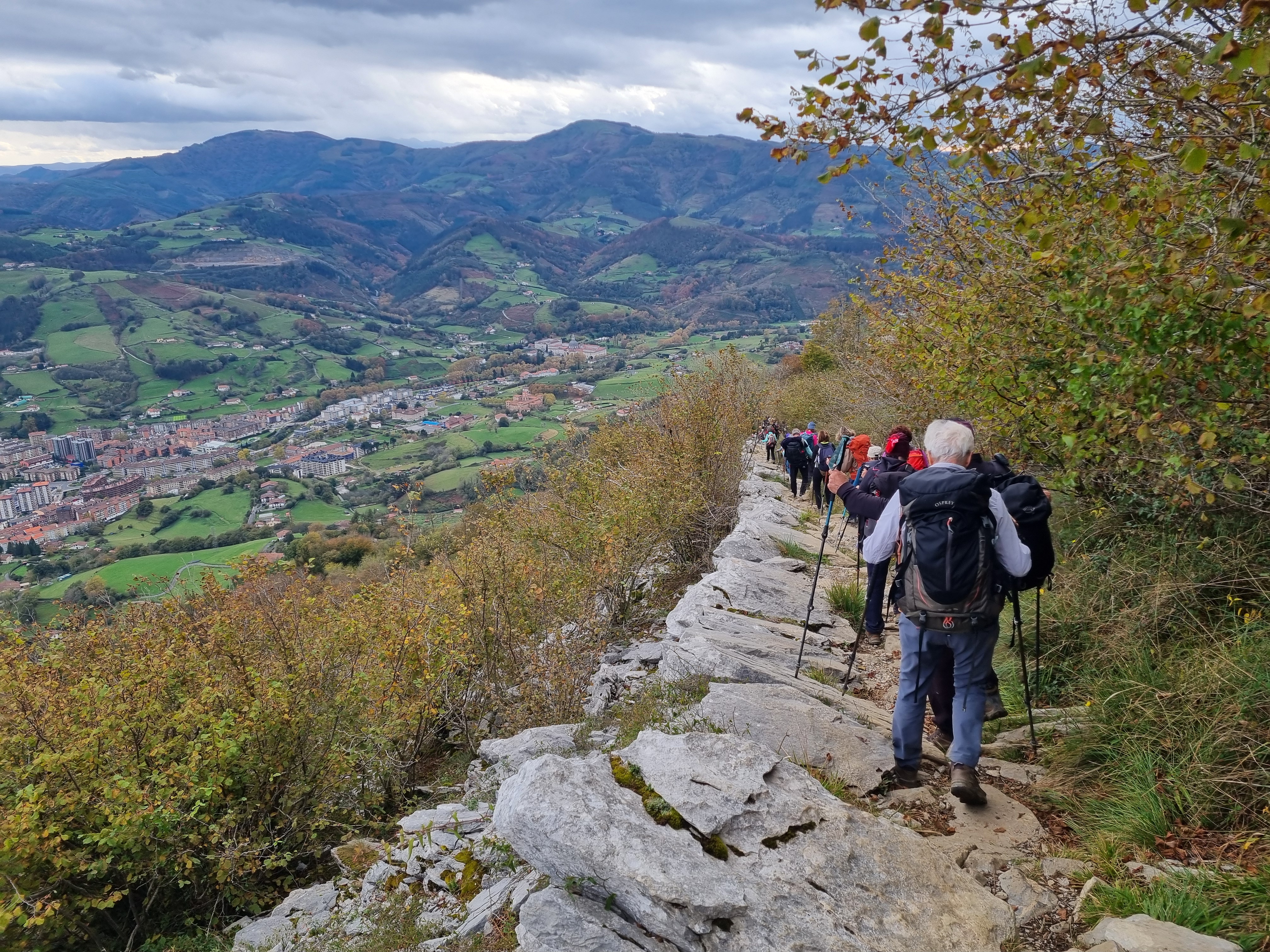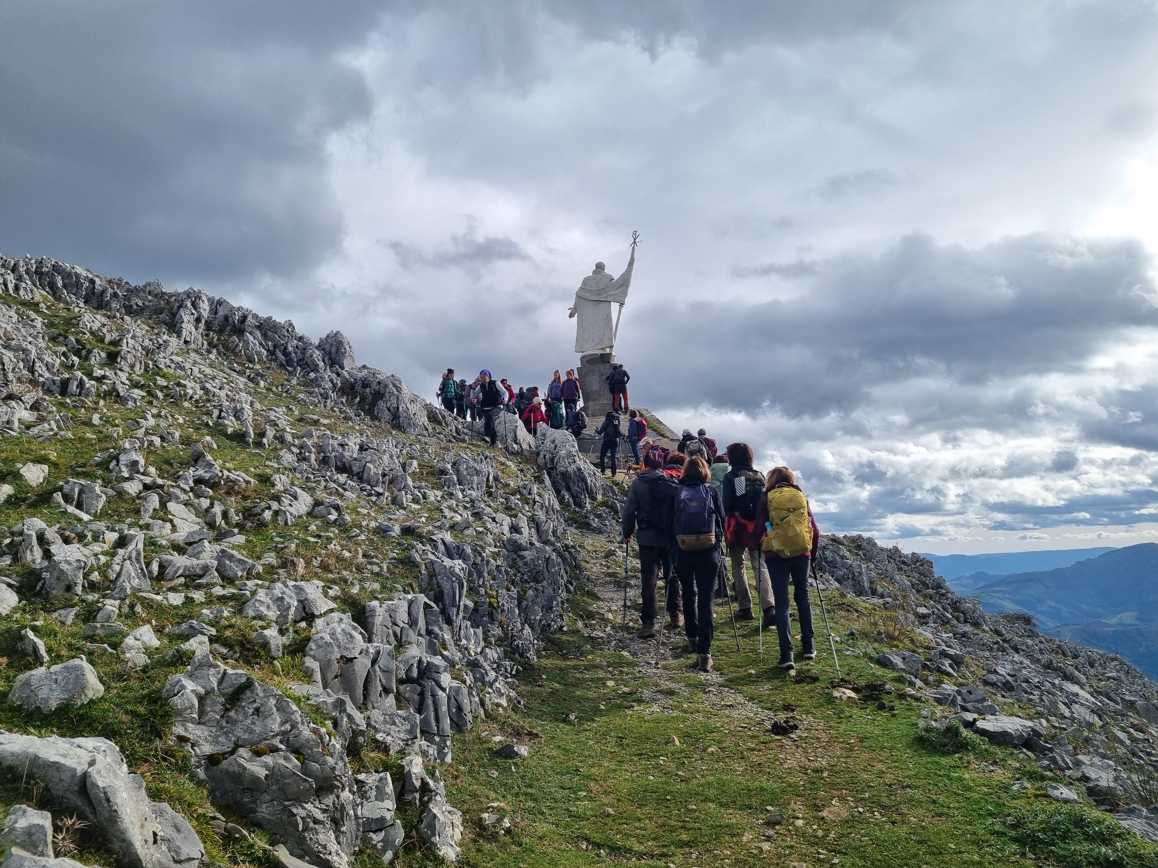 Car, sitôt passée la frontière, le ciel s’éclaircit et c’est dans une douce lumière d’automne que nous quittons les 80 mètres d’altitude d’Azpeitia, la ville natale d’Ignace de Loyola, en direction du pic d’Erlo (1029 m) pour les plus décidés, ou du refuge Xoxote (880m), de la statue d’Ignacio de Loyola puis du pic Aterpea (911 m) pour ceux qui veulent profiter plus longtemps de la pause.