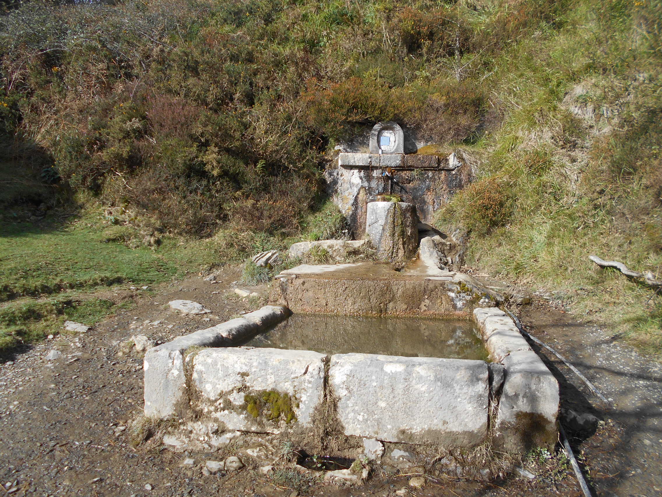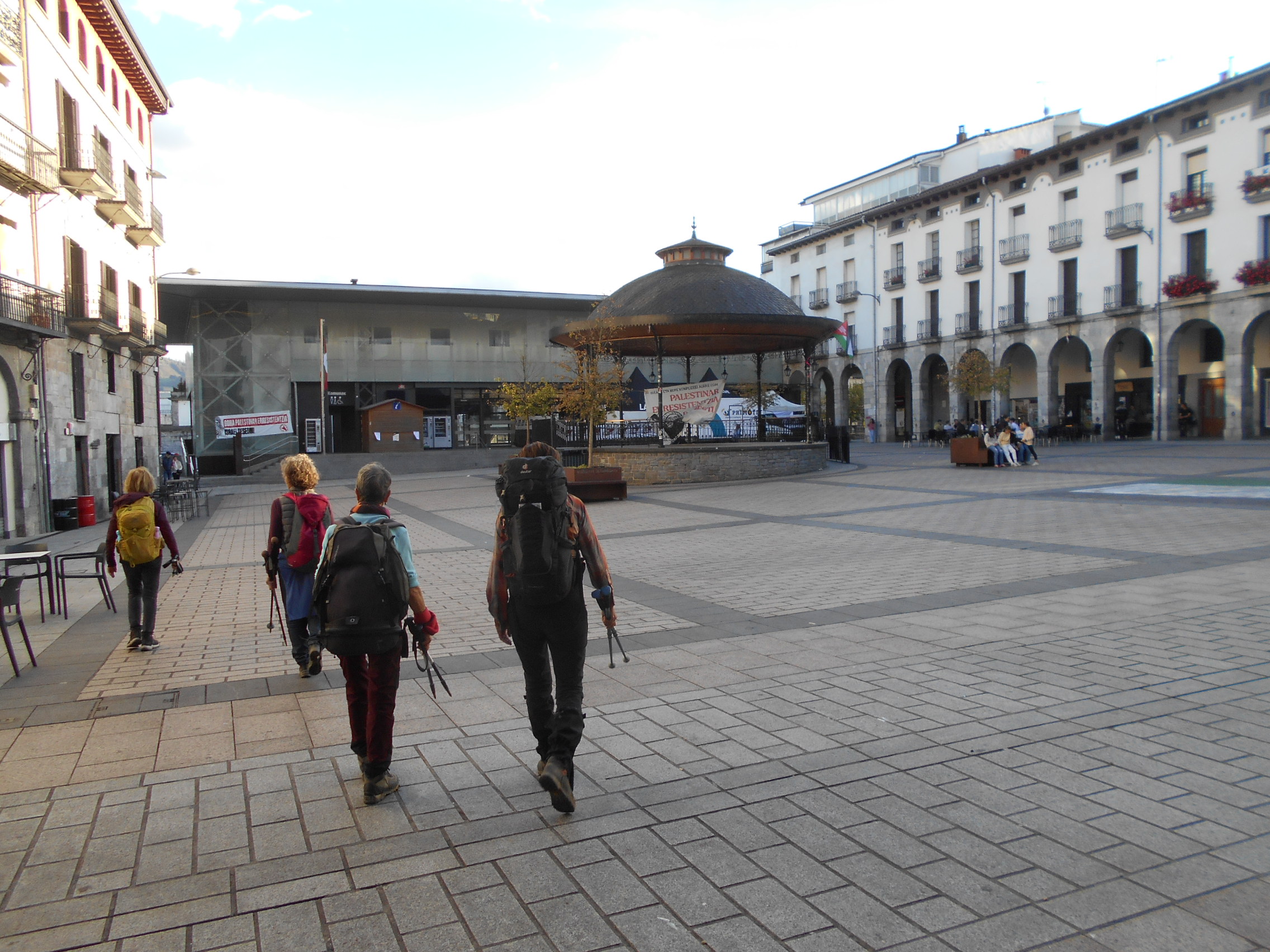La descente se fait en douceur jusqu’à la fontaine où un poème en basque nous rappelle qu’il faut respecter le don d’eau pure de cette source, puis continue sur un sentier enroché qui occasionne quelques glissades. Nous rejoignons avec plaisir la petite route qui mène au centre d’Azpeitia. Une dernière pause au soleil sur la place et cette belle journée est déjà finie. Quelle chance nous avons eue de randonner en tee-shirt alors qu’au Pourtalet (notre destination initiale) il faisait brouillard et - 4 degrés !