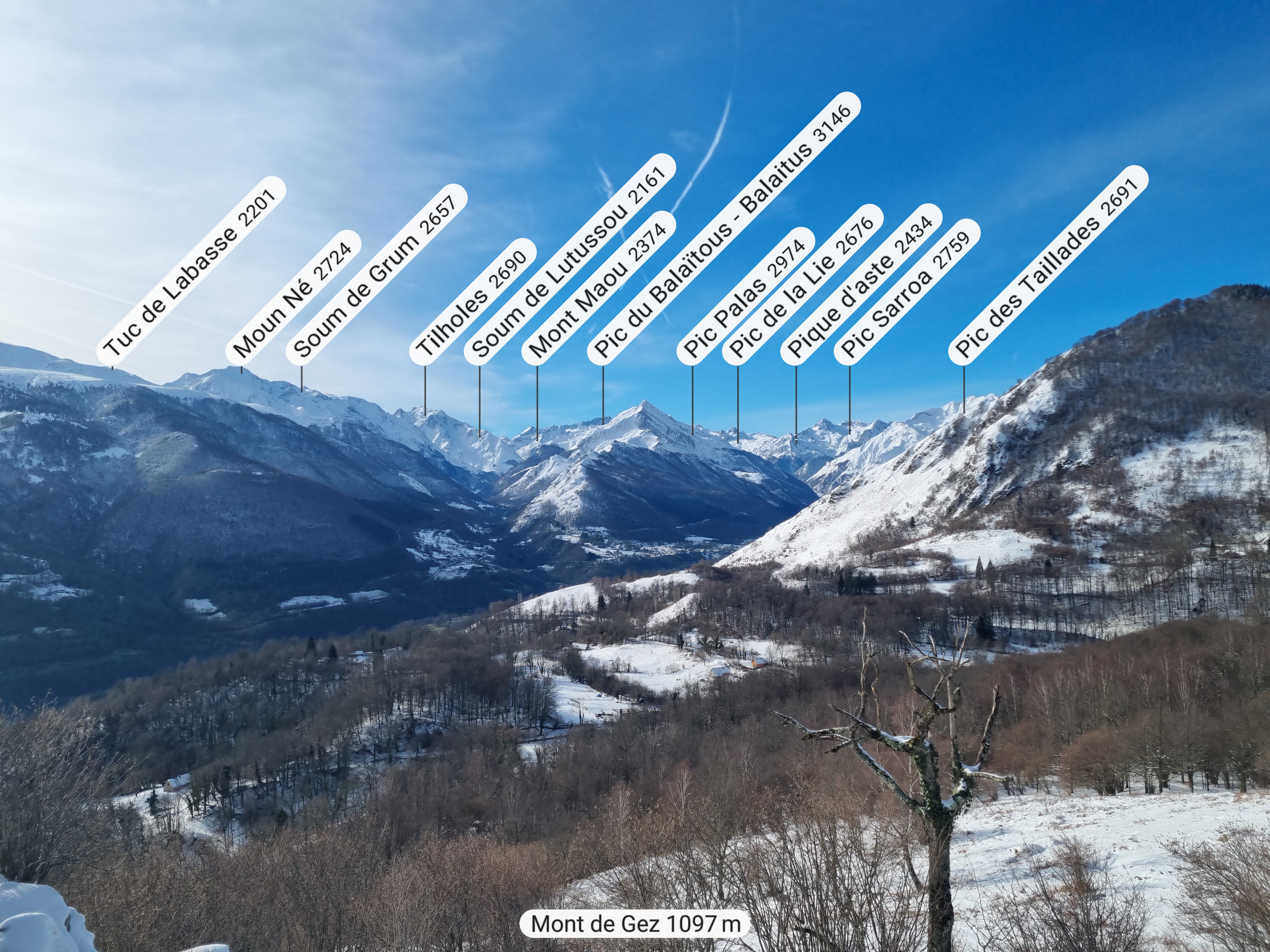 Etant donné que nous avions le temps, nous avons pris notre déjeuner face aux pics du Midi (de Bigorre et d’Arrens) et profiter de la beauté des Pyrénées enneigées et du soleil.