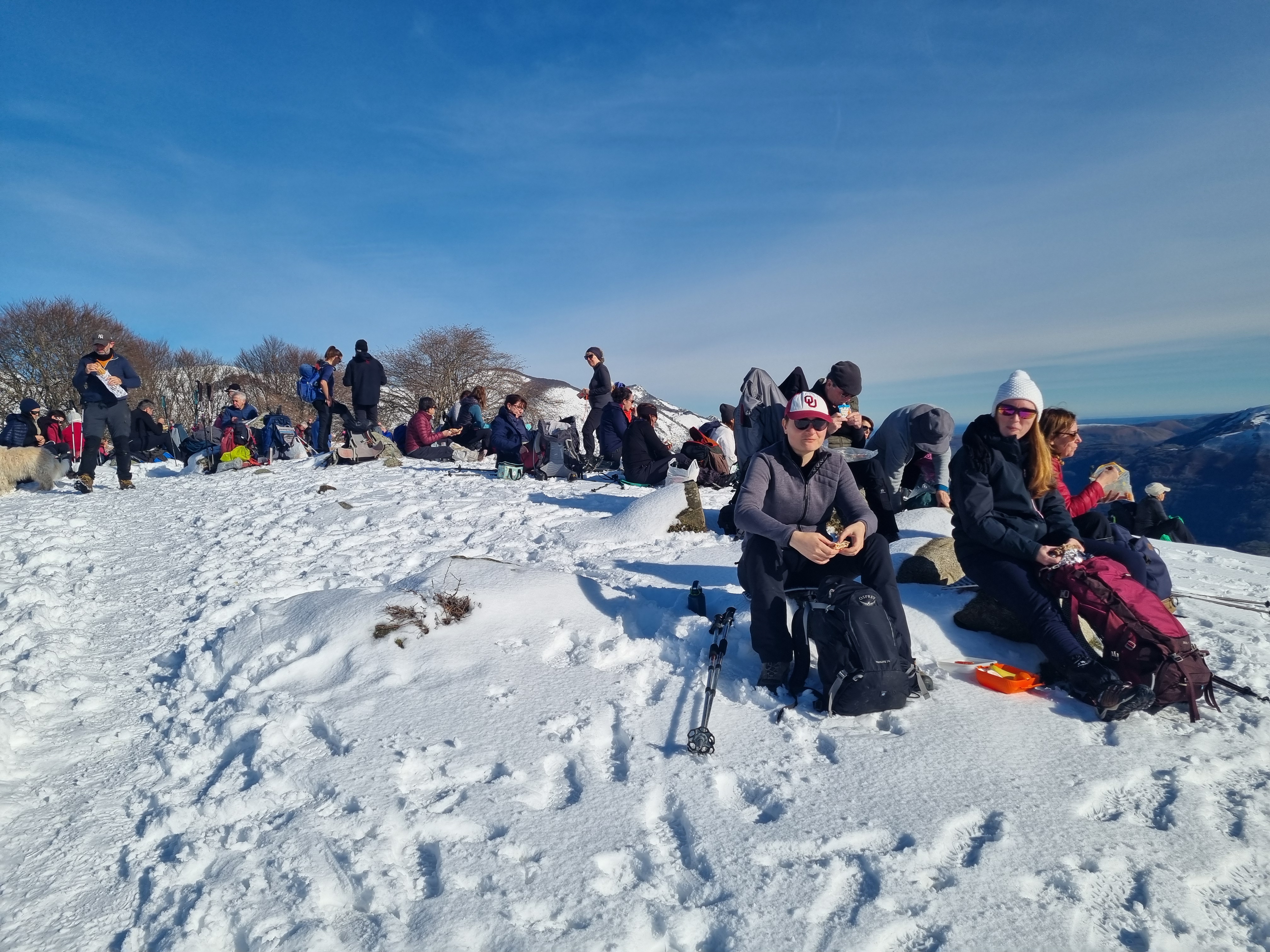 Nous poursuivons vers le sommet, la neige crissait sous nos pas, et le soleil brillait. Arrivée à notre objectif,