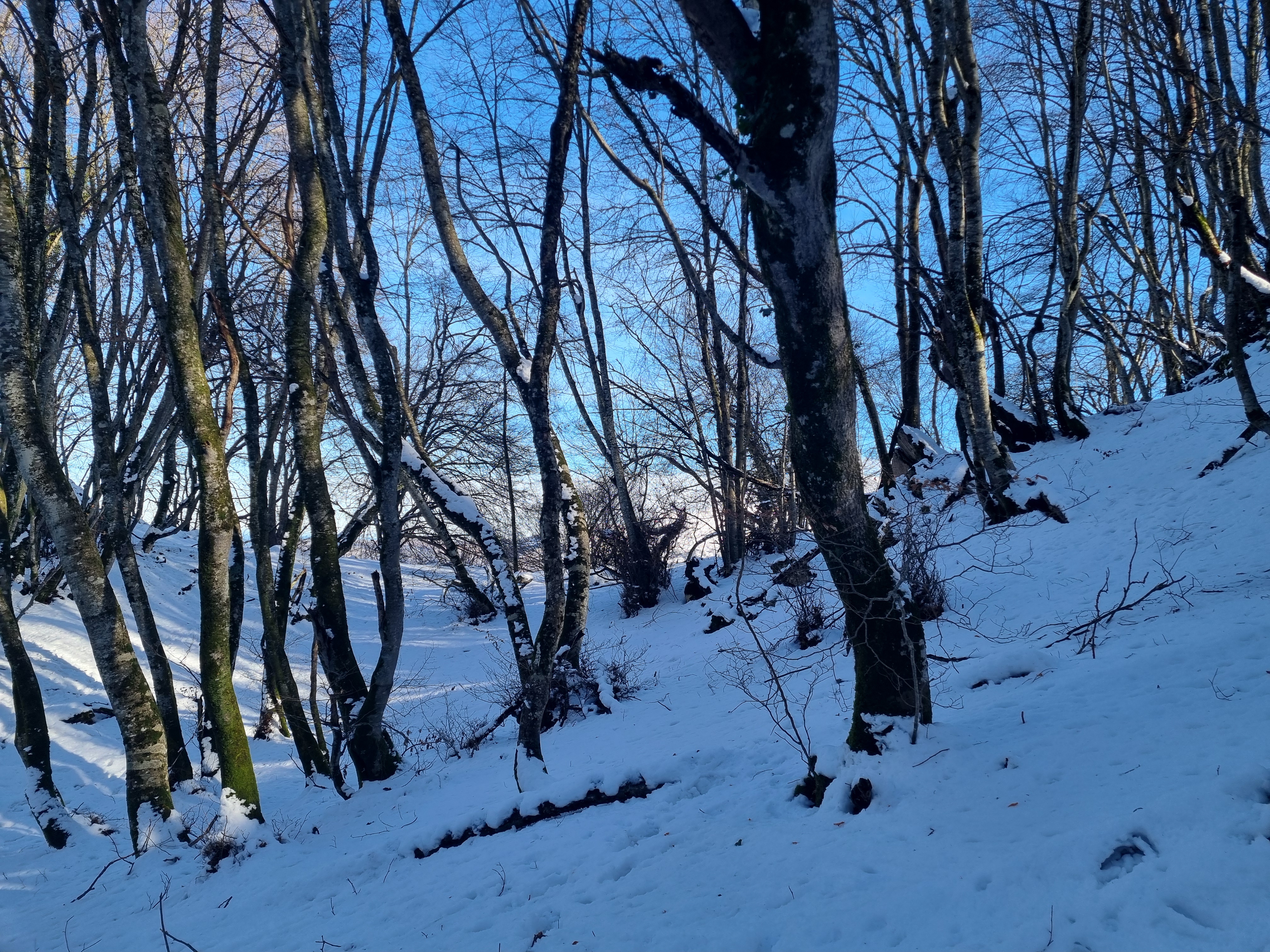 Pour commencer, nous avons traversé une forêt vite enneigée, les arbres recouverts de neige créant un paysage hivernal que l’on aime. Les rayons du soleil filtraient à travers les branches, créant des jeux de lumière sur la neige.