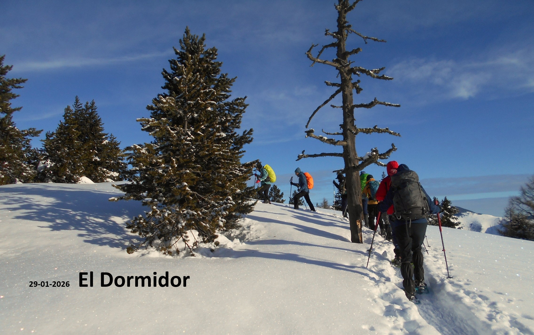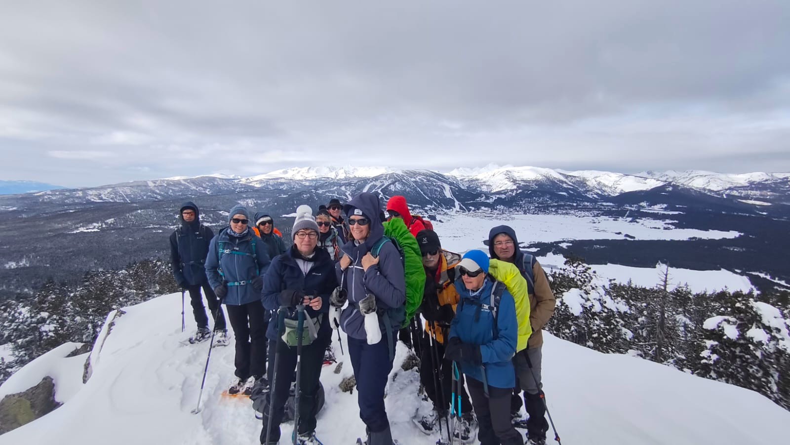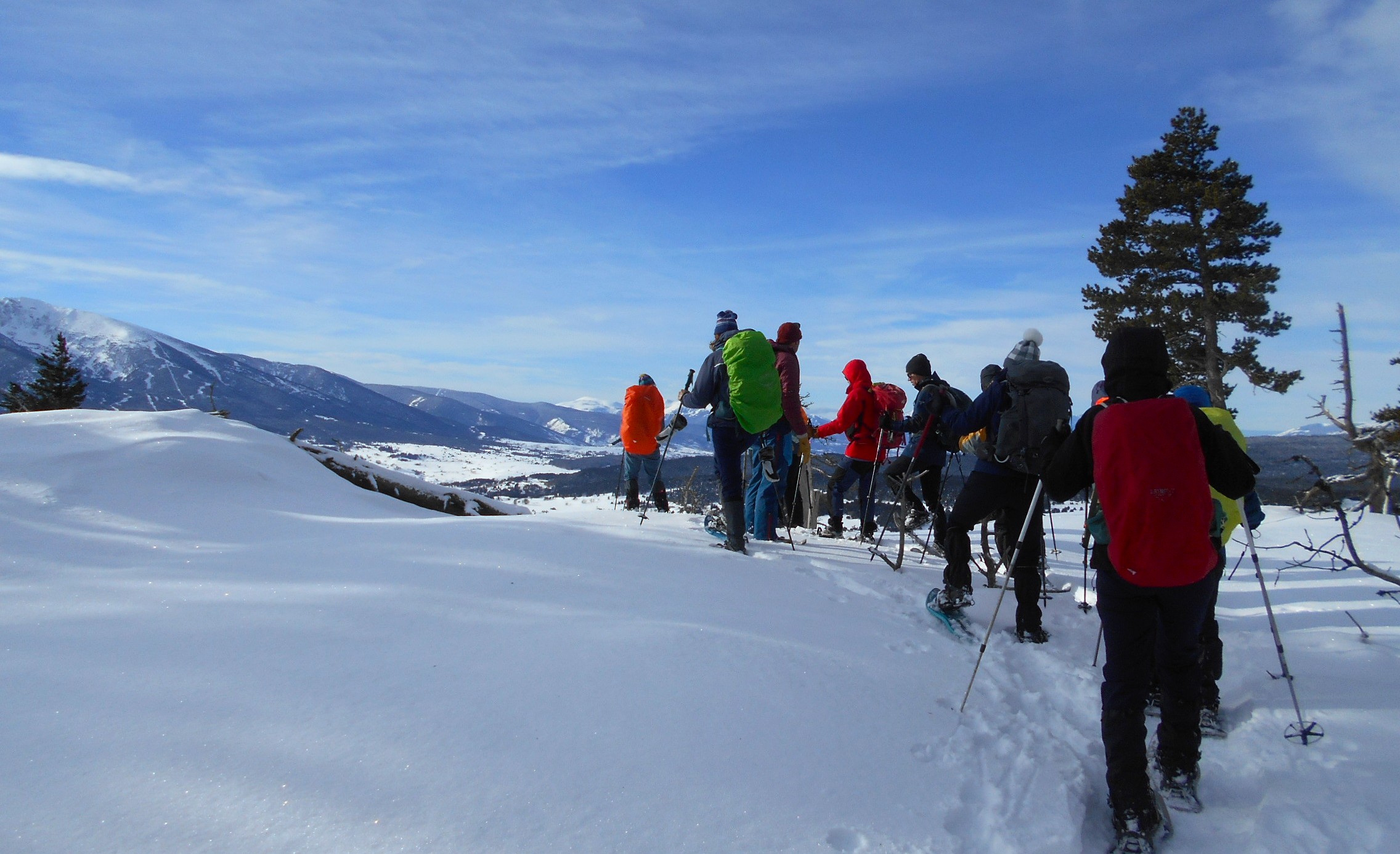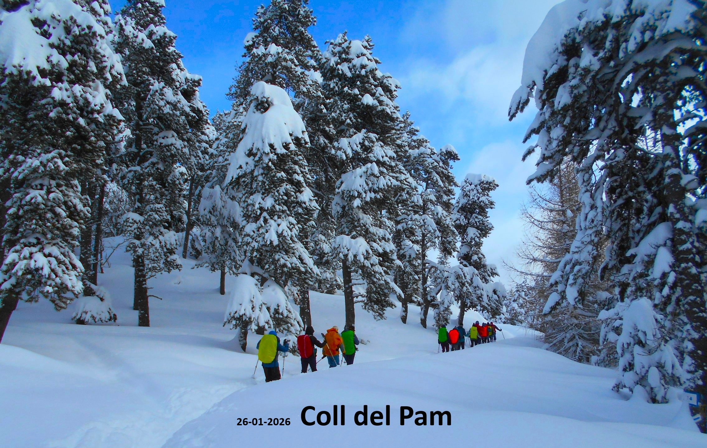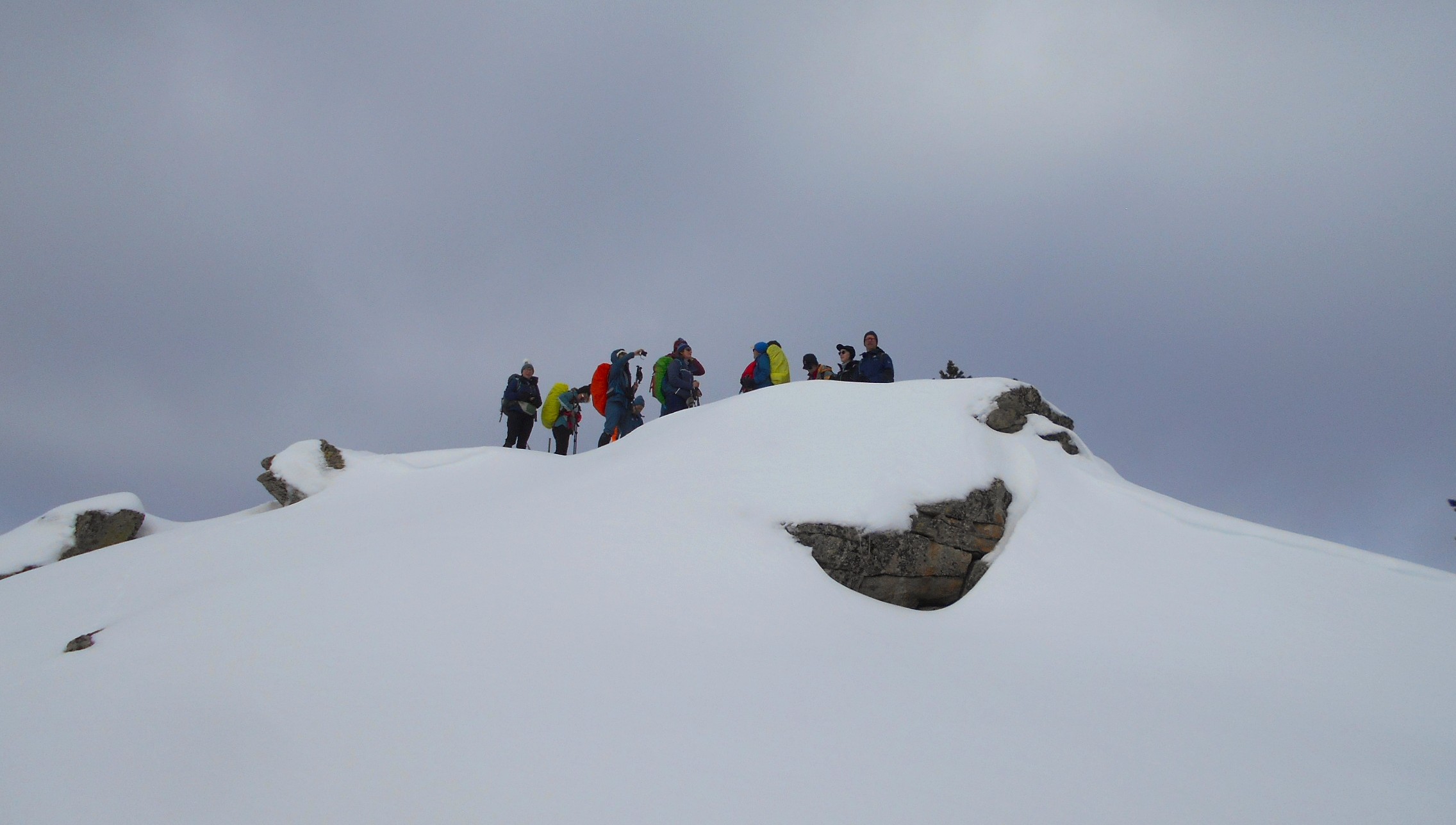 Mercredi 28, les routes verglacées nous incitent à quitter le gîte raquettes aux pieds pour rejoindre l’étang gelé de Ticou, entouré de sa forêt de sapins délicatement saupoudrée de neige fraiche. L’après-midi nous partons du parking des Errels, à la station de ski de Font-Romeu. Fred et quelques adhérents valeureux ouvrent la trace vers les hauteurs de la station, offrant une vue panoramique exceptionnelle sur la chaine frontalière, du pic du Canigou jusqu’au Carlit.