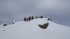 Lundi 26 marque le début de notre aventure en raquettes. Notre guide Fred, nous présente le programme de la journée, direction le col de Pam, à 2005m d’altitude. De là-haut, la vue est splendide sur le Cometa d’Espagne, le Petit et le Grand Péric, ainsi que sur le majestueux Carlit. Le chemin, bordé de sculptures contemporaines, laisse libre cours à l’imagination. Fred sonde la neige : elle atteint 1,40 mètre par endroits.