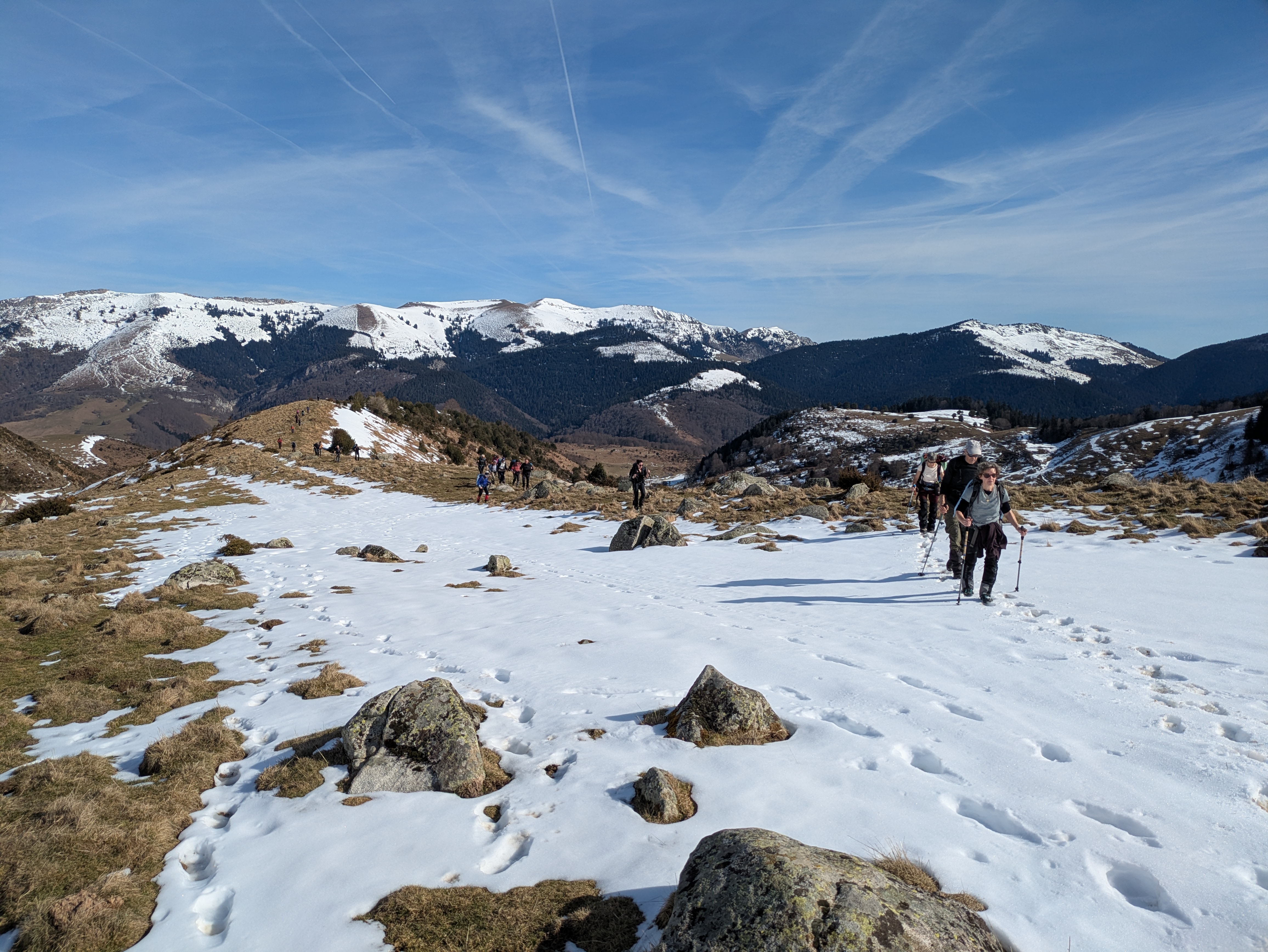Enfin une belle fenêtre météo ! 45 randonneurs ont répondu présent au départ du joli ‘’domaine’’ de Payolle à 1089 m.