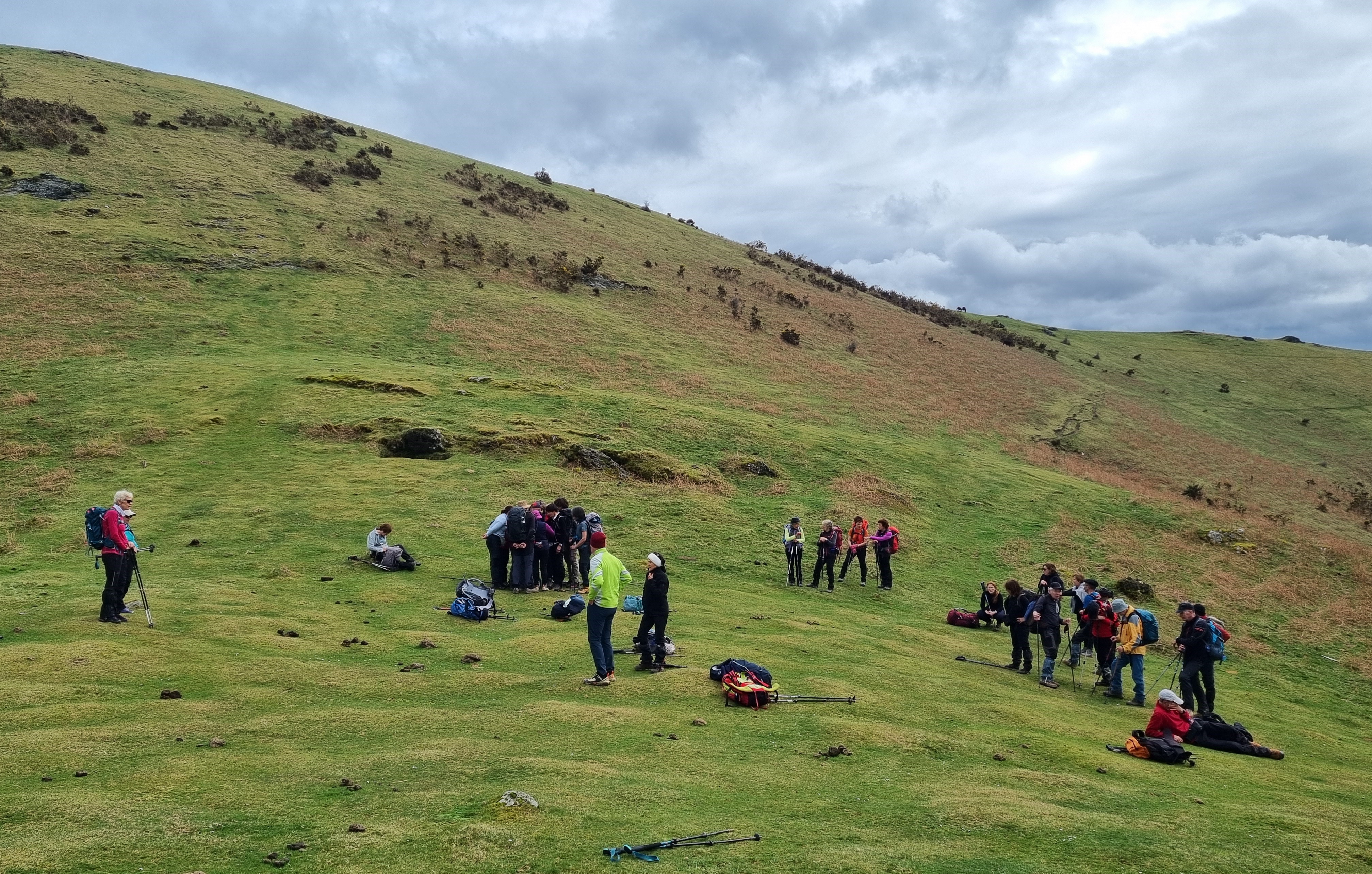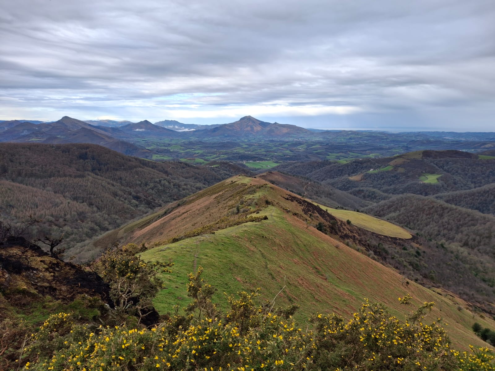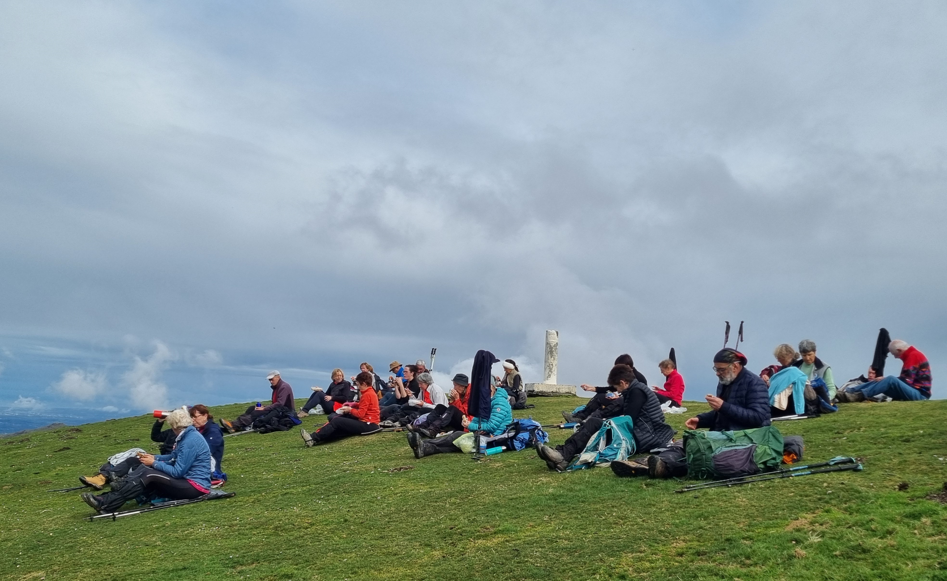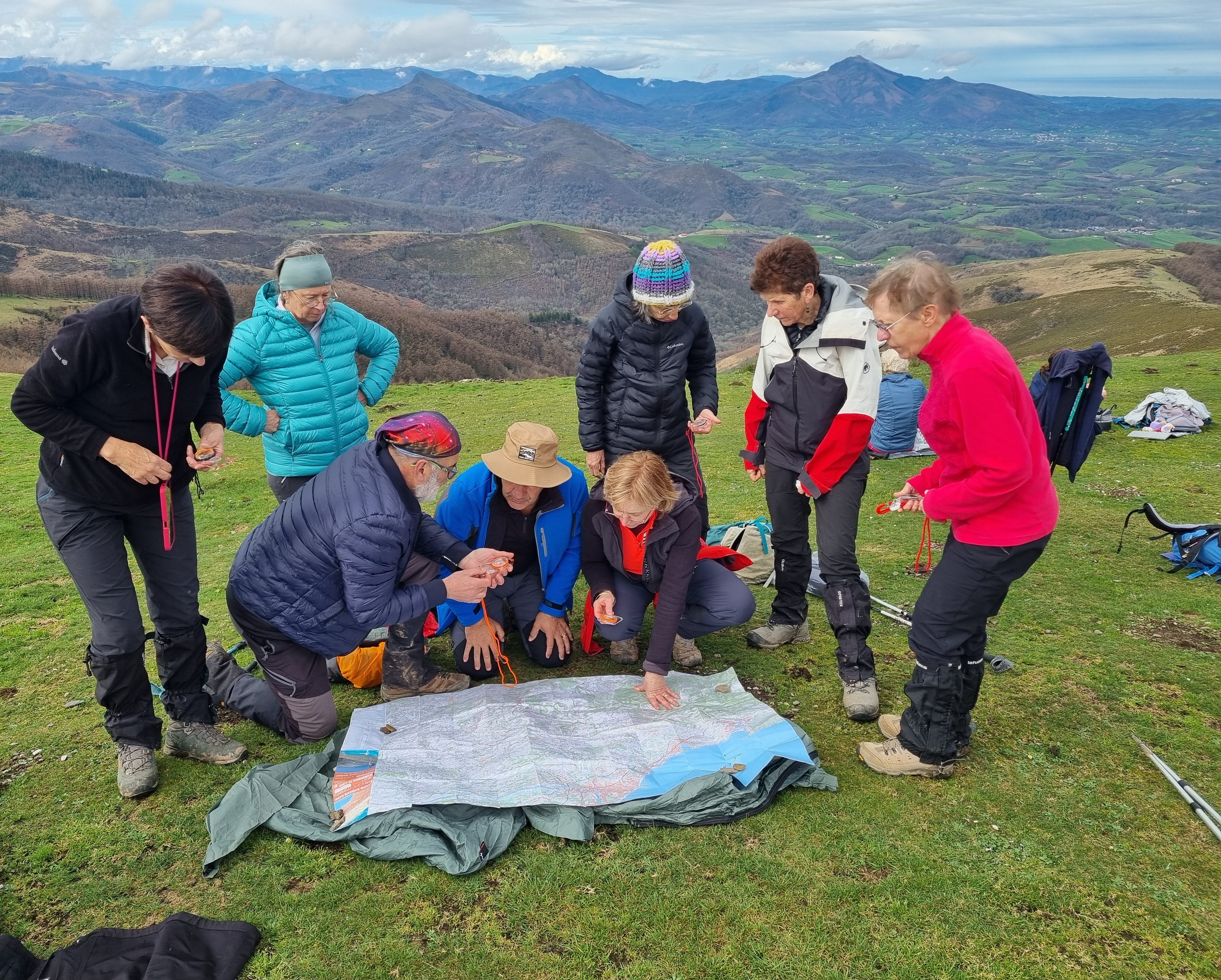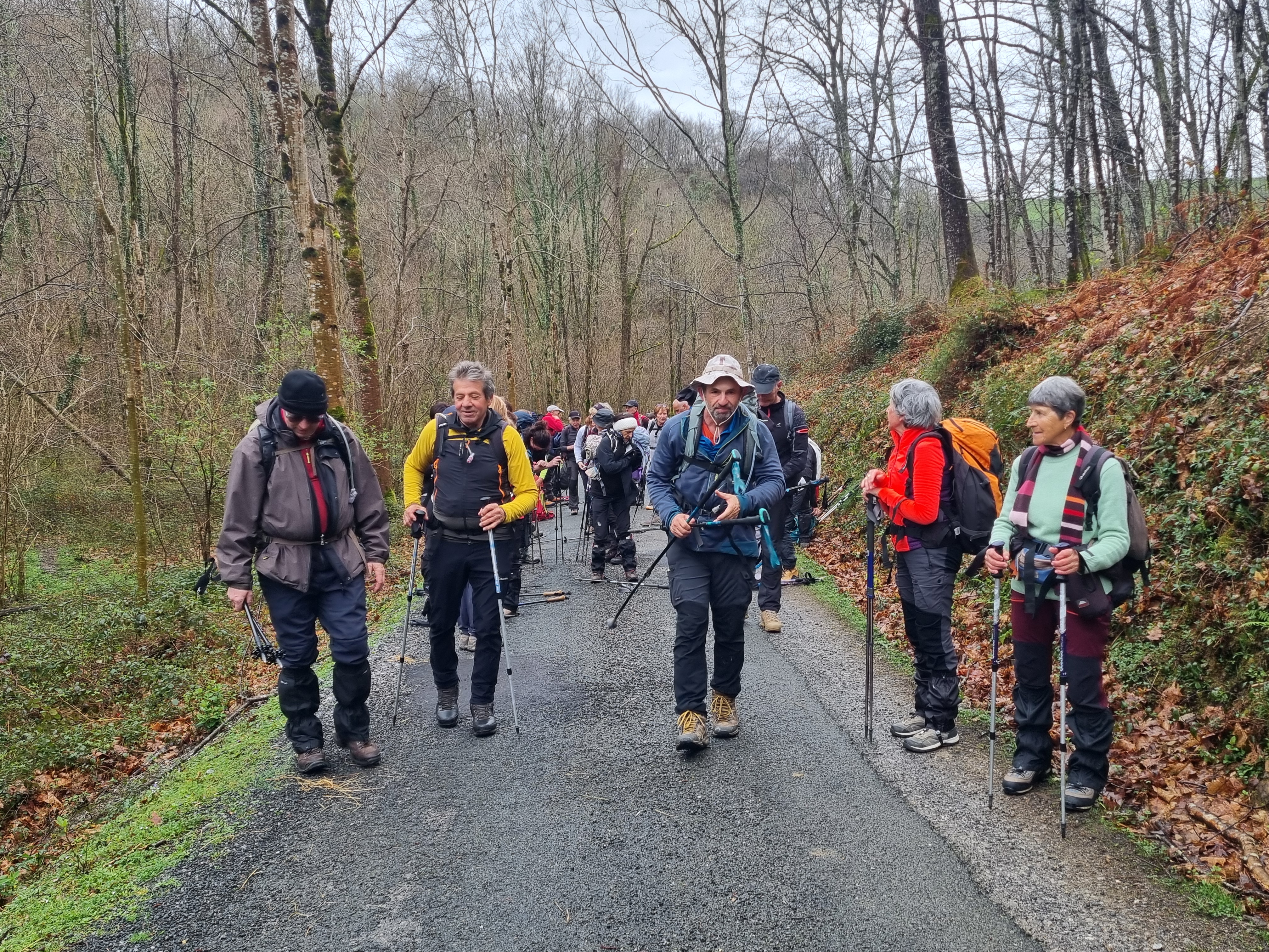 Pourquoi ces 37 adhérents du CMA allaient-ils ce dimanche 8 Mars sous la pluie en direction de Dancharia ? Pour se lancer à l’assaut des ventas faire du shopping ? Que nenni ! Ils partaient en quête d’évasion, l’objectif du jour étant le Lizartzu . Et cette fois il fut atteint après deux tentatives infructueuses dans le passé dues aux caprices de la météo. Ce dimanche tout se présentait pour le mieux : la pluie avait cessé en cours de trajet, Eole dormait, les températures s’ annonçaient clémentes. Donc nous voilà partis de la venta Peyo pour environ 17 km et 850 de dénivelés, essentiellement sur les crêtes. Un peu de route goudronnée puis la traversée de la rivière Lapitxuri vers les crêtres d’Haizagerry jusqu’au col de Gorospil (662m) . Au cours du cheminement nous découvrons une stèle commémorative du réseau Cométe qui nous rappelle que nous sommes un passage historique de" l’armée des ombres".(voir photo) En effet, de 41 à 44, ce réseau de résistance exfiltrait des aviateurs anglais tombés en Belgique ou dans le nord de la France sous les coups de le DCA allemande par le pays basque puis l’Espagne "sous la barbe" des gendarmes de Vichy, des garde-frontières franquistes et bien sûr des patrouilles allemandes pour qu’ils puissent rejoindre l’Angleterre via Gibraltar et reprendre le combat. Grâce à ce réseau Comète fort de 259 résistants, le plus grand réseau d’évasion de la seconde guerre mondiale, 800 aviateurs furent sauvés , 382 purent regagner Londres. En ce jour du Droit des Femmes il n’est pas inintéressant de souligner que ce réseau avait été cofondé et dirigé par une femme Andrée de Jongh dite Dédée. Nous poursuivons notre marche...Une clôture pour tester notre souplesse, quelques efforts dans la pente raide des montagnes russes basques et nous voilà sur le tant convoité Lizartzu à présent vaincu pour notre pause pique-nique. Notre terrasse du jour est exceptionnelle offrant une vue grandiose à 360° : l’Alkuruntz au NO, la Rhune, les 3 Couronnes à l’O, l’Artazamendi, l’Iguzki, Bayonne entre autres... Il faudra pourtant bien redescendre. Quelques arrêts ont permis à Michel en bon pédagogue de réunir ses stagiaires en formation" orientation et lecture de cartes" pour leur proposer des exercices grandeur nature sur terrain. Et nous arrivons assez tôt au bus pour que certains aient le plaisir de faire quelques emplettes rapides ou se désaltérer à la venta. Le chauffeur emprunte un itinéraire inattendu par Souraide ce qui permet de profiter encore un peu des paysages basques. Ce fut une super journée pour tous ceux qui ont voulu croire à la bonne étoile avec l’amélioration de la météo. Un grand merci à notre accompagnateur du jour, Eric, pour nous avoir proposé cette belle sortie. Merci aussi à tous les autres accompagnateurs qui, une fois de plus, ont assuré notre bien-être et notre sécurité. RDV le 29 Mars.